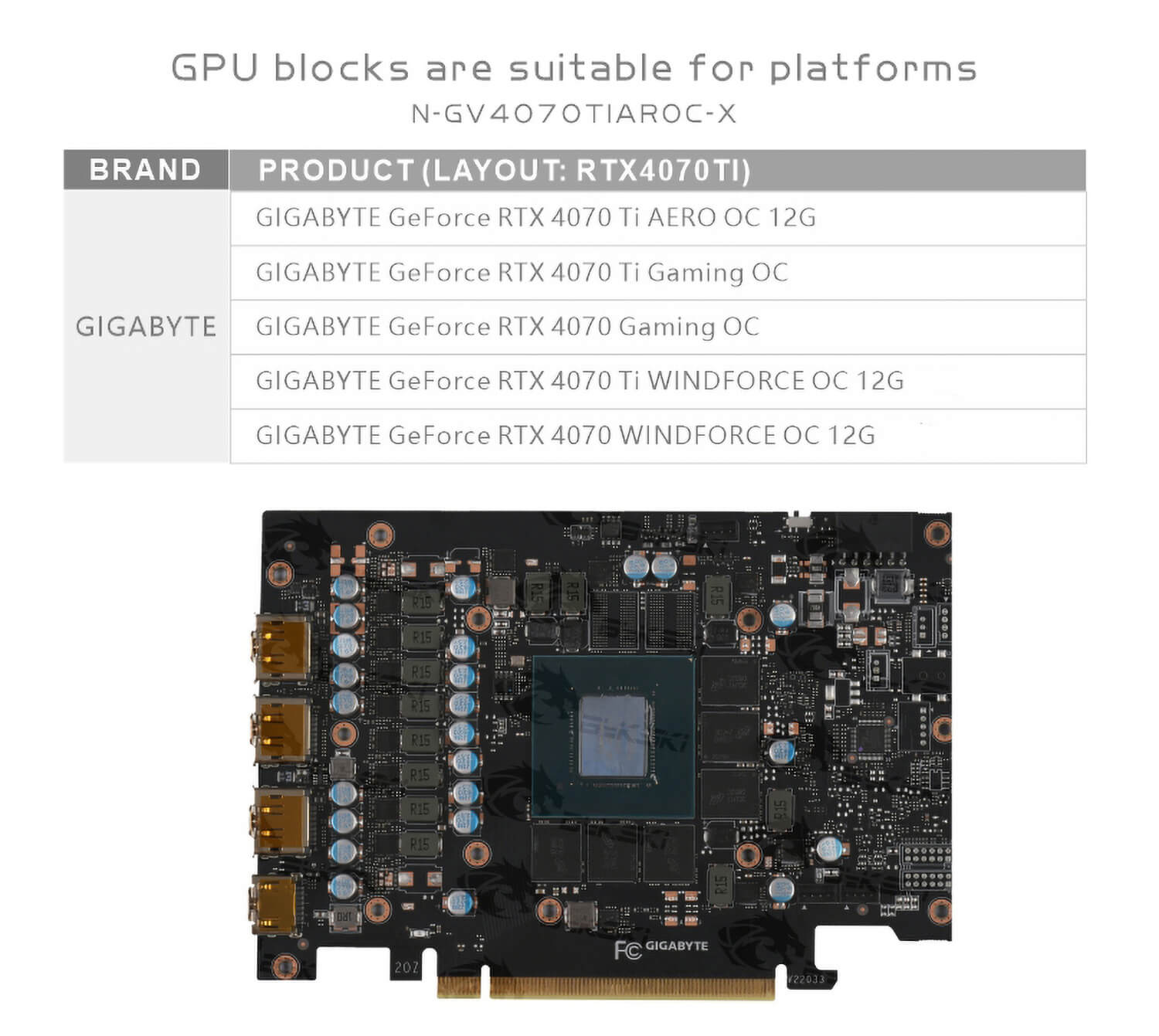 Bykski GIGABYTE RTX 4070 Ti Gaming OC GPU waterblock incl. backplate