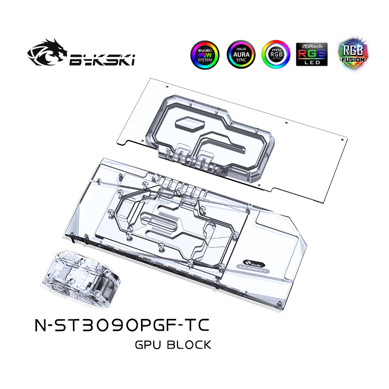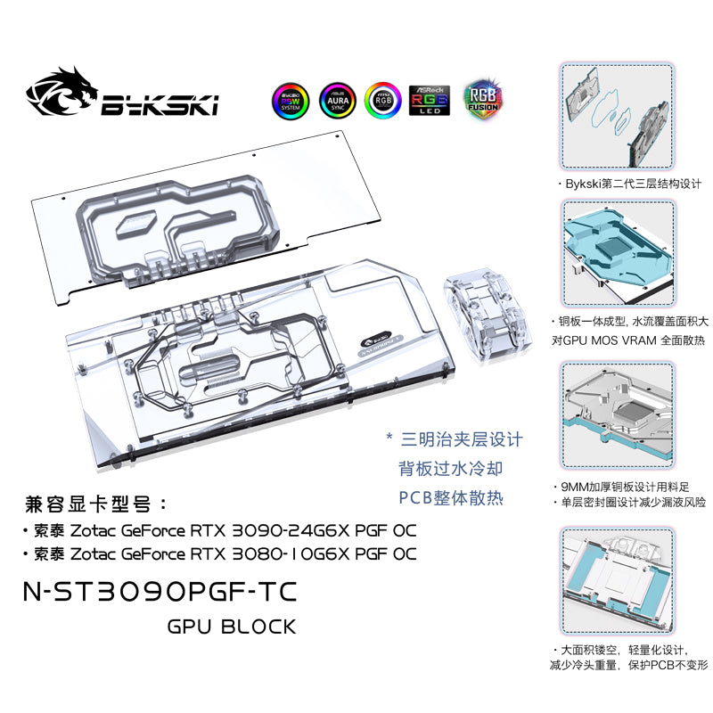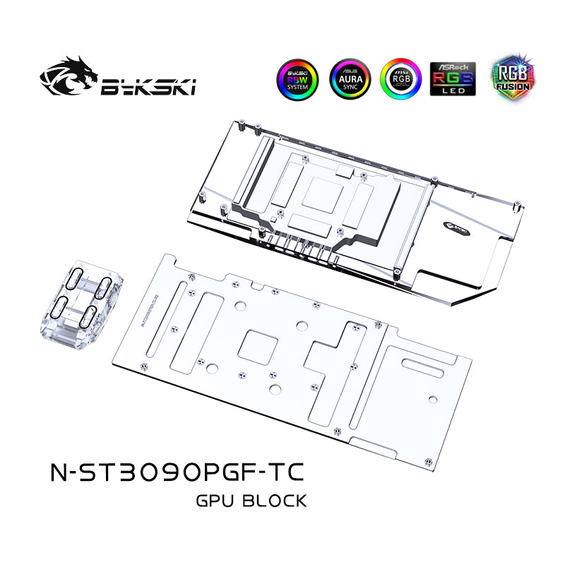 The Bykski water block for the Zotac 3080 / 3090 PGF OC with active backplate (N-ST3090PGF-TC).