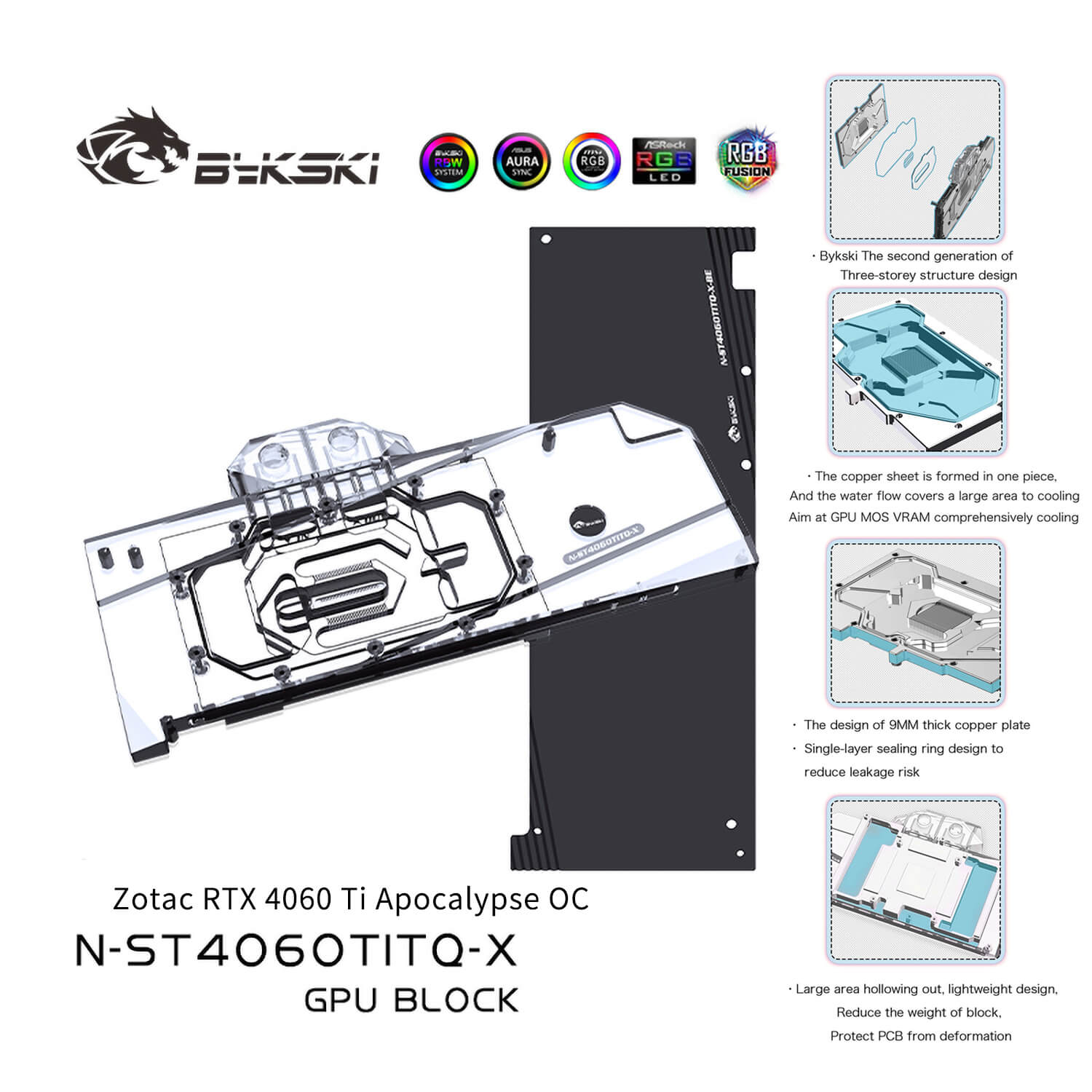 Bykski ZOTAC RTX 4060TI OC GPU waterblock incl. backplate